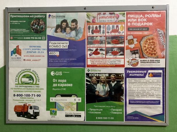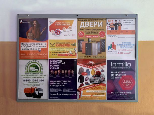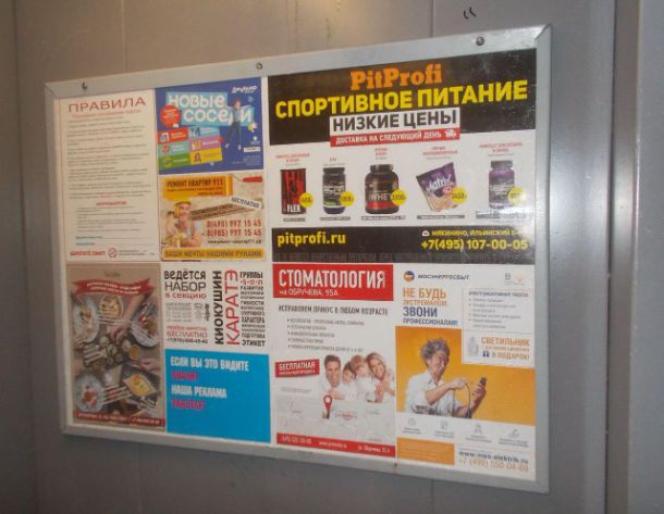 ПРИМЕРЫ РЕКЛАМНЫХ СТЕНДОВ в подьездах жилых домов